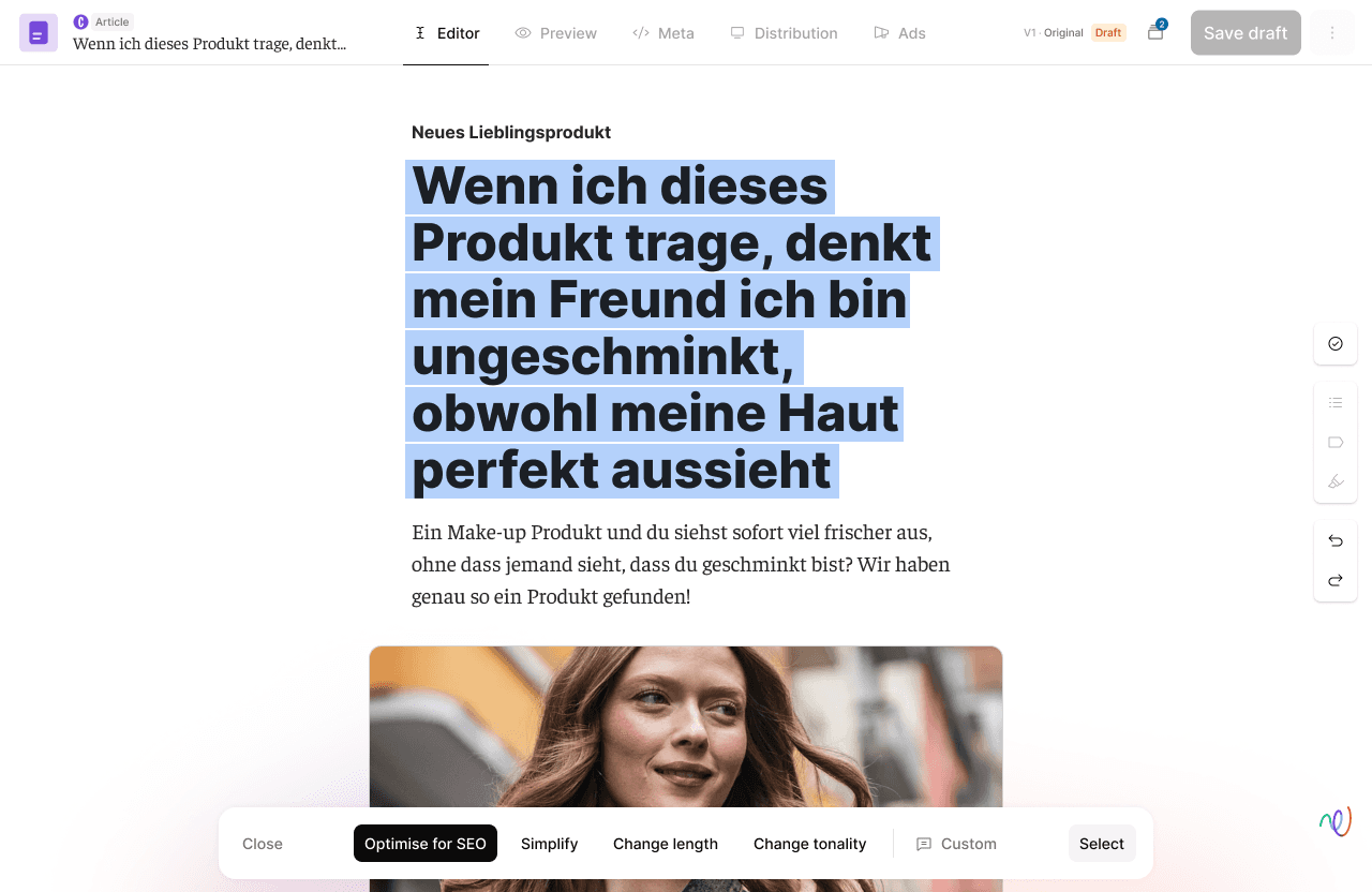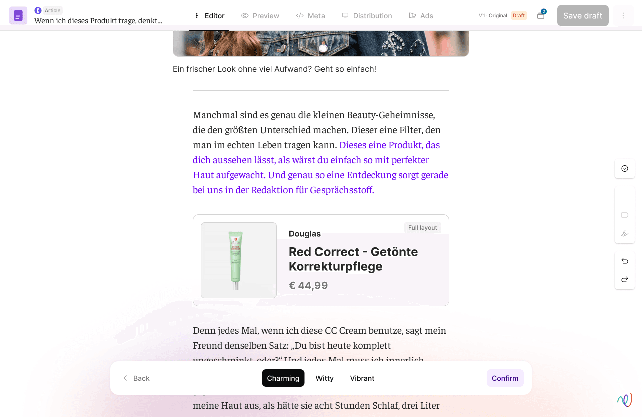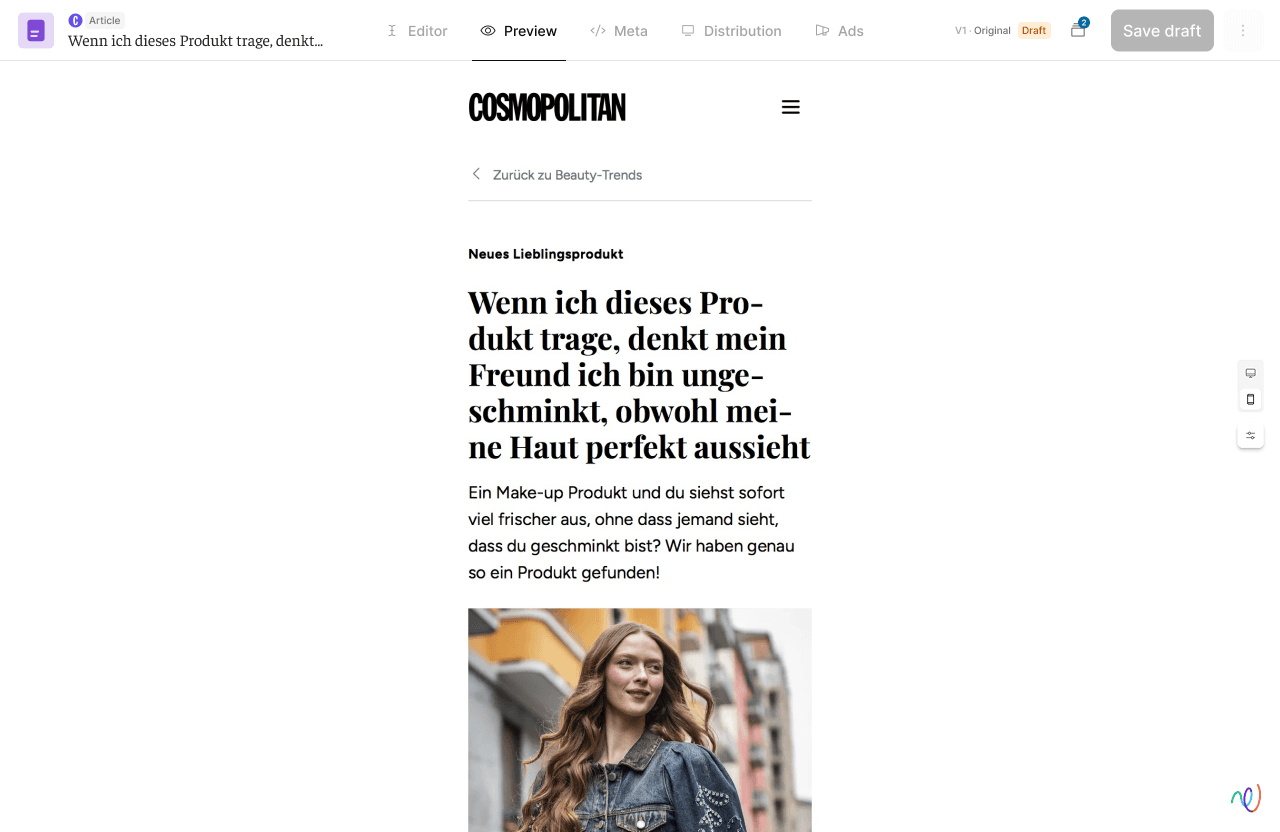 Mit TONI können wir Cosmopolitan.de heute mindestens zehnmal effizienter produzieren – ohne an Qualität zu verlieren, im Gegenteil. Die Redaktion bleibt das Herz, TONI ist das Content Operating System.