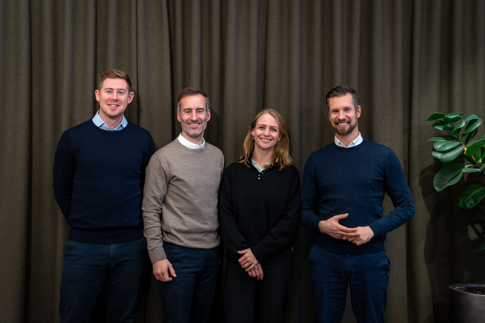 Fra venstre: Martin Rubæk (Customer Success Director i Ibexa), Stian Prestegård (Growth Director i Forte), Simone Vestergaard (Partner Director i Ibexa) og Rolf Valstad (Sales Director i Forte).